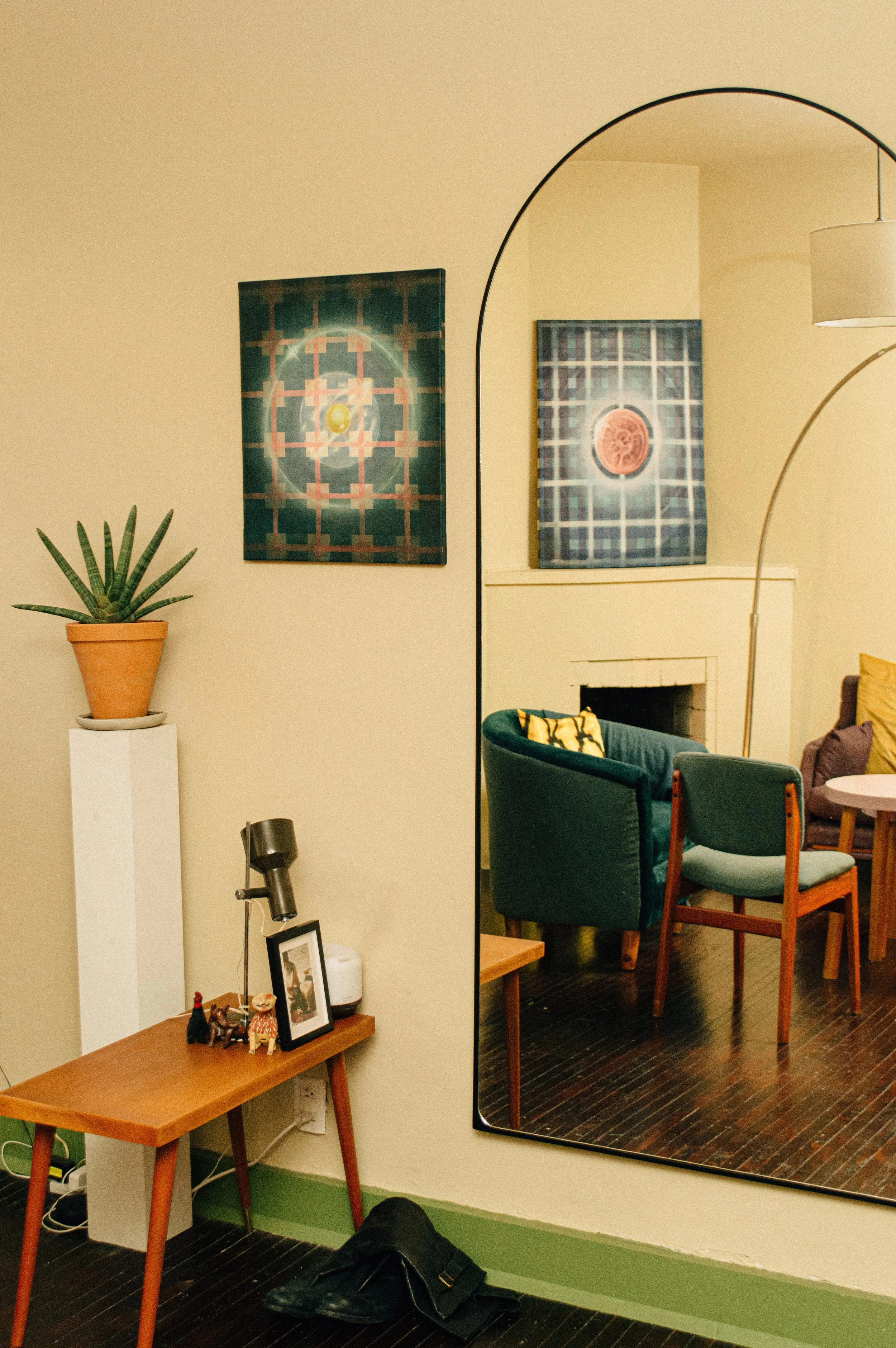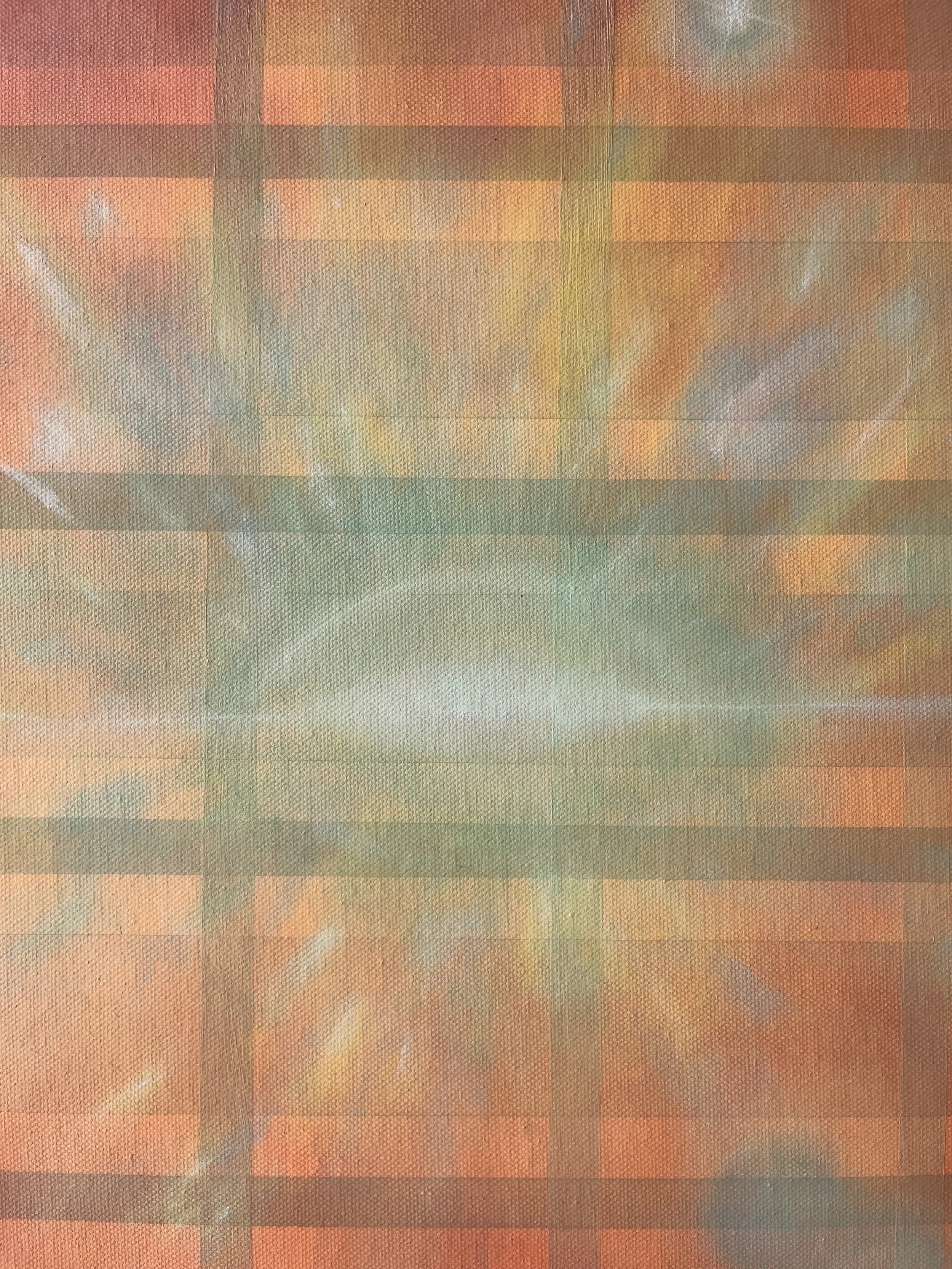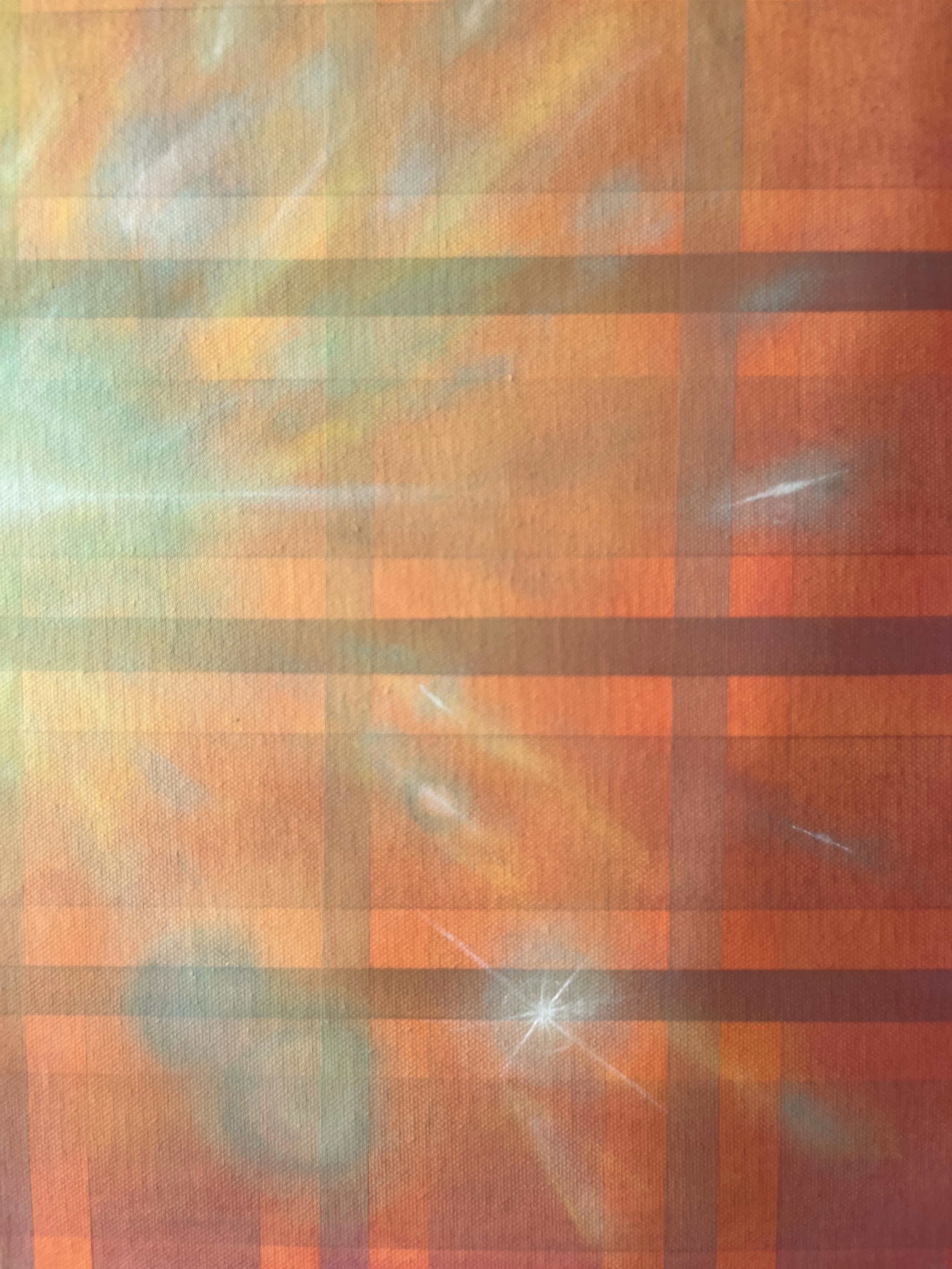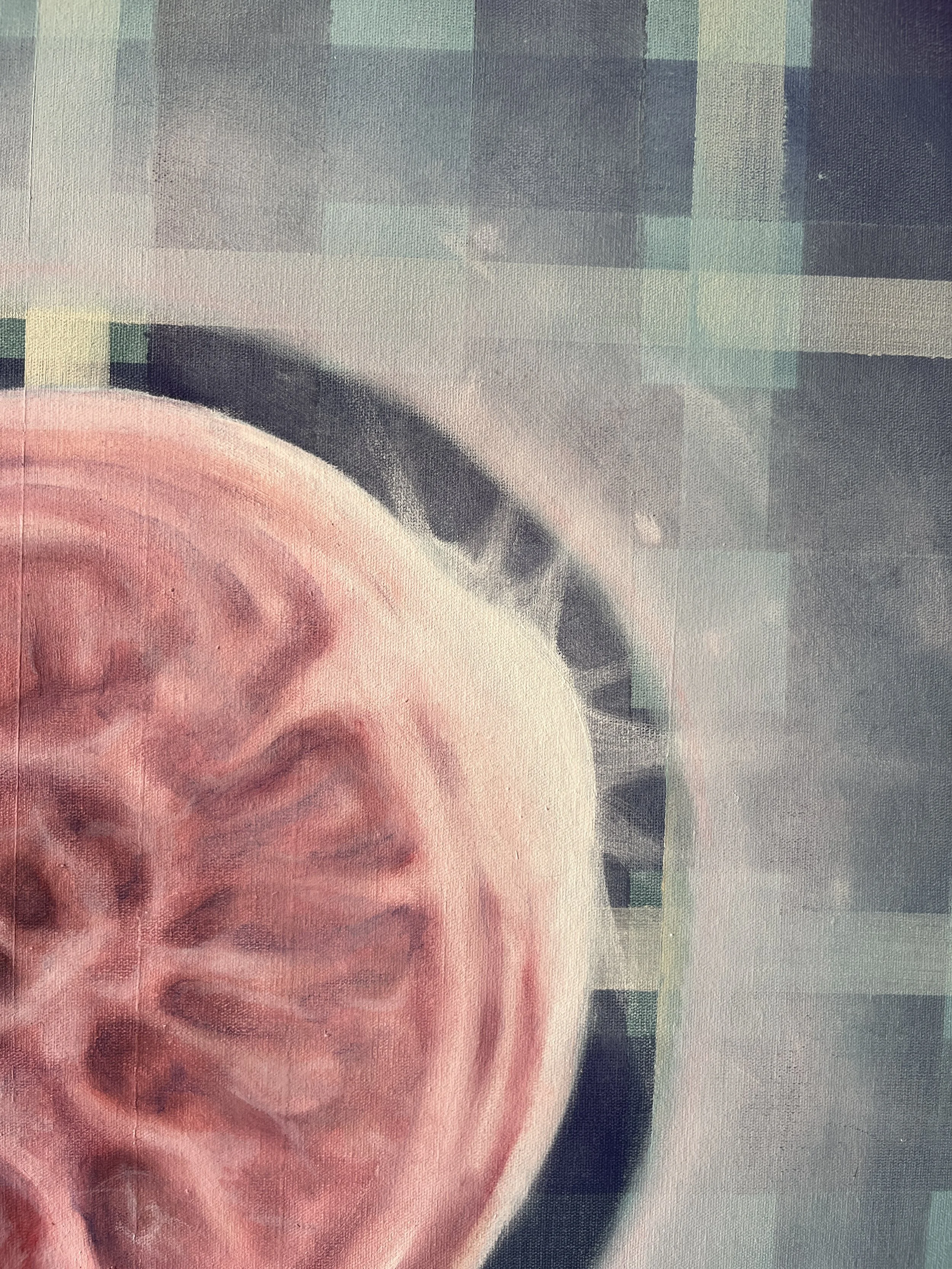A través de una vibrante paleta de colores, esta serie de obras evoca fondos entrelazados con delicadas cuadrículas y esferas luminosas, simbolizando el fluir dinámico de la energía cósmica.